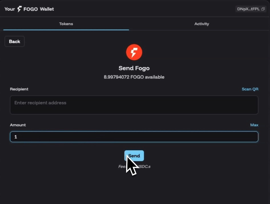 Enter the recipient's Fogo address