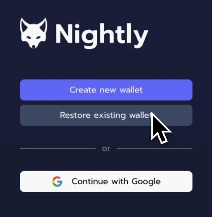 Restore existing wallet - this is if you have previously set up a wallet on Fogo and wish to restore it using your 12 or 24-word seed phrase