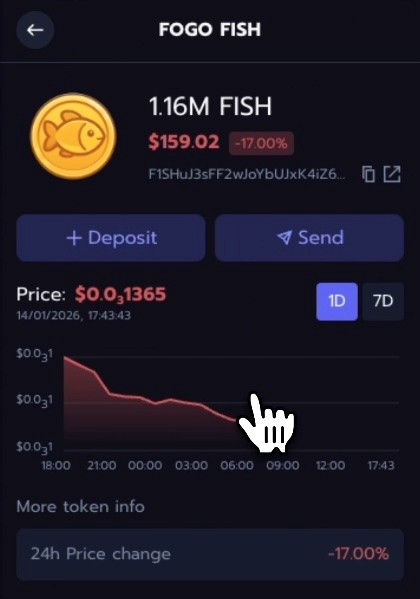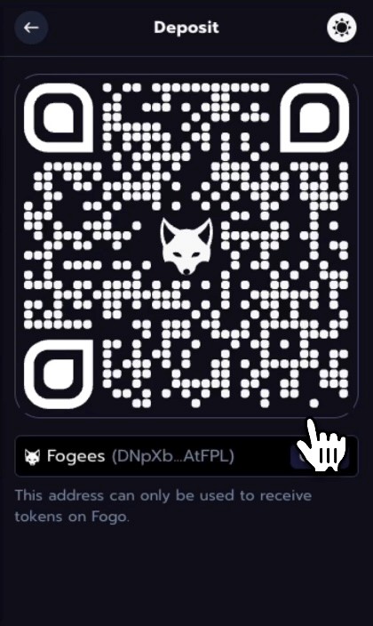 Note: The address shown on a token's page is the token contract address, not your wallet address. To receive any token on Fogo, always use the Deposit button. Your wallet address is the same for all Fogo-supported tokens.
