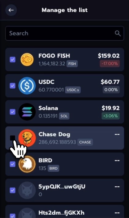If you have tokens you don't want to see (like random airdrops), click Manage List and toggle them off. They're still in your wallet on the blockchain, but they won't show in the interface.