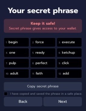 Never give your secret recovery phrase to anyone and never enter it into any website.